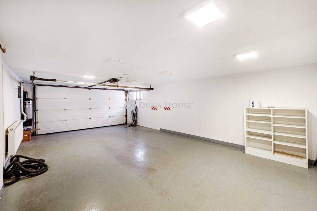 A pinceszinten 36,7 m2-es kétállásos garázs Hörmánn Promatic elektromos kapuval, ipari árammal, riasztóval. Található itt egy billiárd ,-és darts szalon, egy beépített gardrób, valamint háztartási helyiség is.