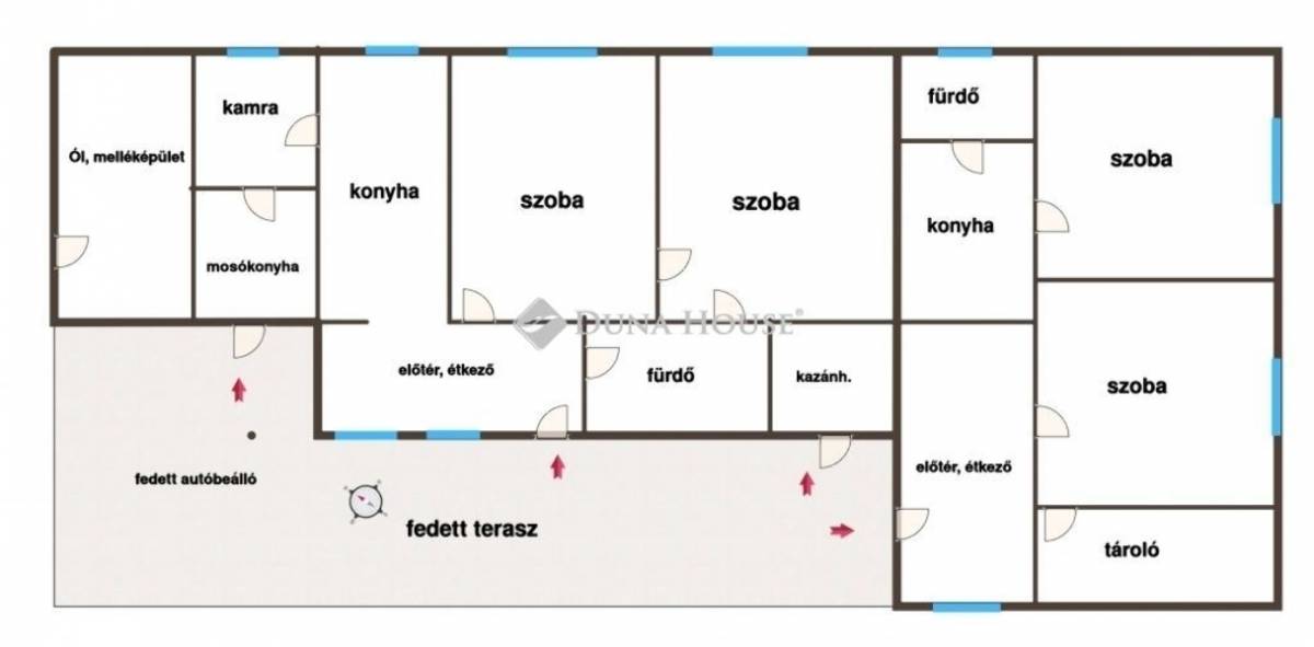 Az ingatlanhoz tartozik továbbá egy 50nm-es fedett terasz rész, melynek egy része 2 gépjármű parkolására is alkalmas.