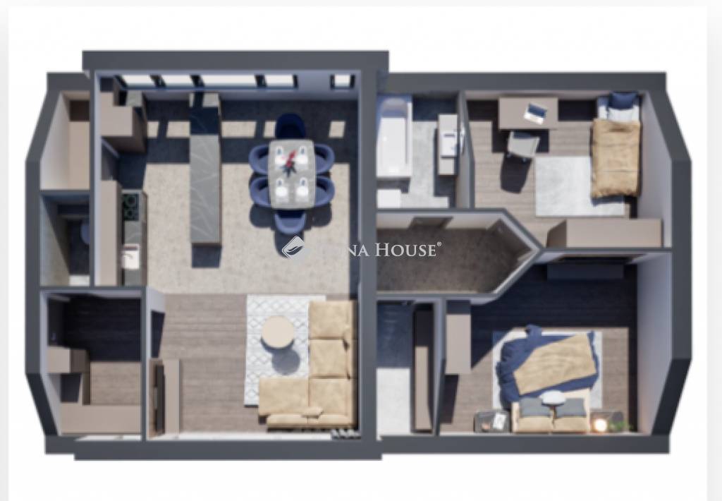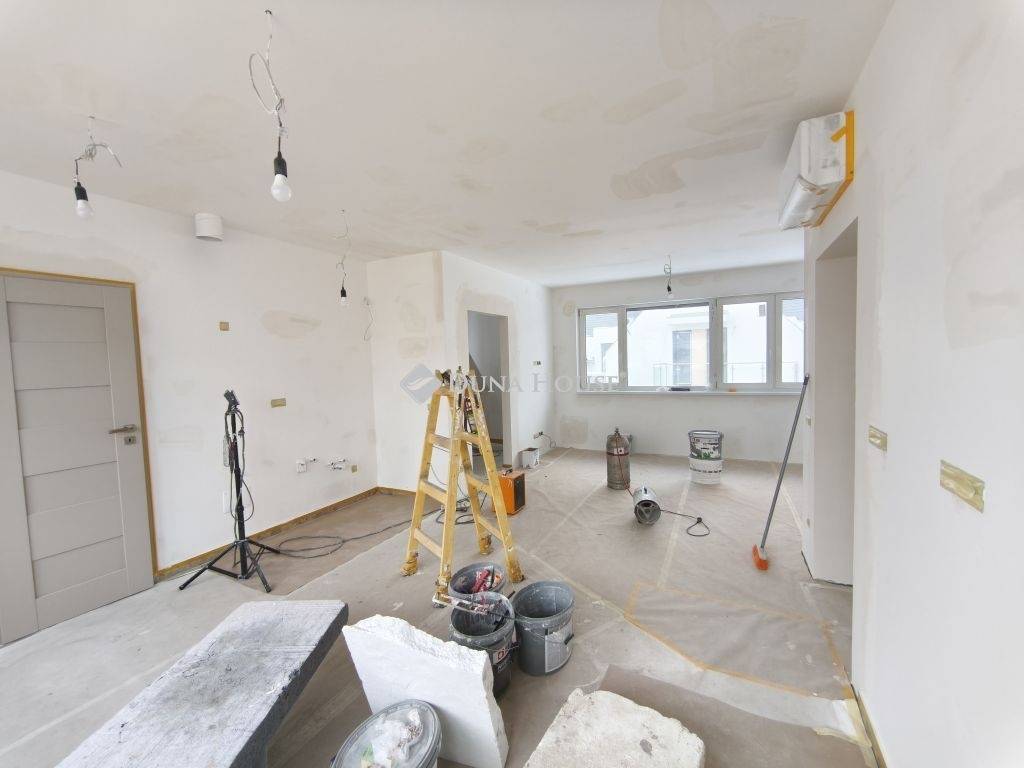 A lakás kialakítása modern és letisztult, magas műszaki tartalommal: