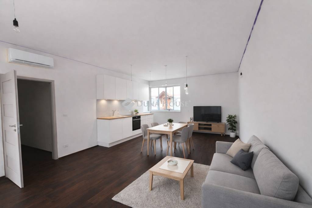 A belváros szívében egy 9 lakásos társasházban kínálunk megvételre egy 61,29 m² alapterületű, újépítésű, prémium minőségben kivitelezett, amerikai konyhás nappali + 2 hálószobás lakást, melyhez egy külön gardrób is tartozik.