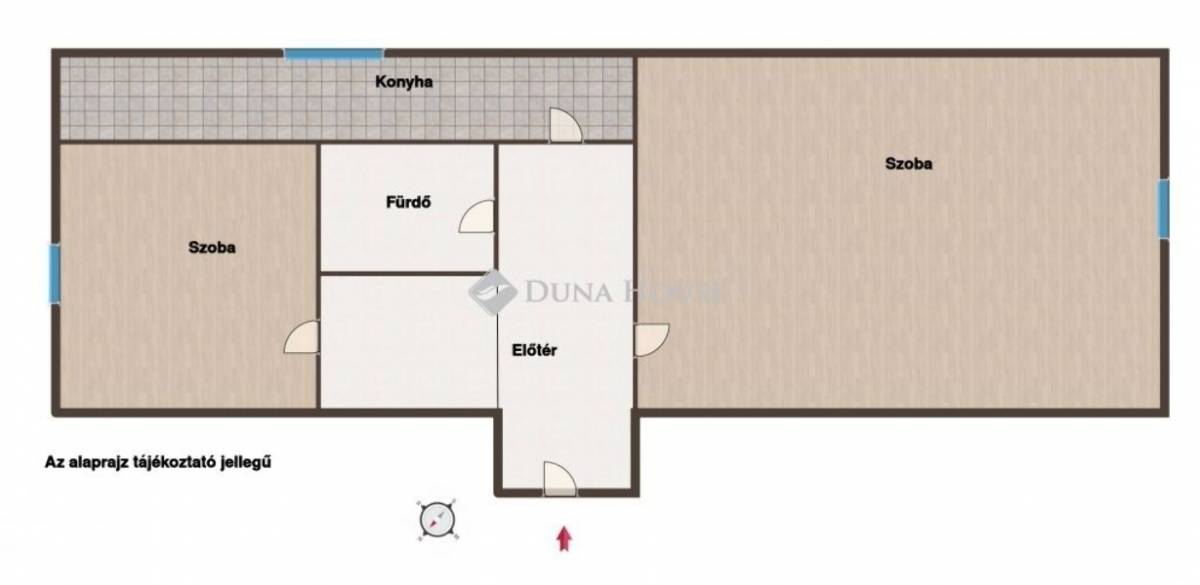 A lakás két külön bejáratú szobával rendelkezik, így kiválóan alkalmas lehet akár egy fiatal pár, akár egy kisebb család számára is. A szobák mellett egy tágas konyha áll rendelkezésre, ahol a családi élet központi helyszíne bontakozhat ki. A fürdőszobában található WC egyben, praktikus megoldást nyújtva. A tágas előszoba egy nagyméretű gardróbbal is büszkélkedhet, amely bőven elegendő tárolási lehetőséget biztosít a lakók számára.
