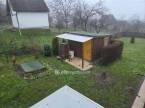 A telek rendezett, körbekerített. Gyümölcsfák és egy tároló van rajt.