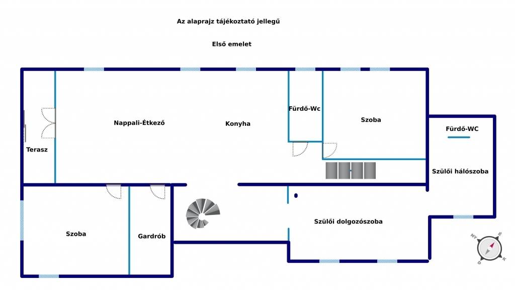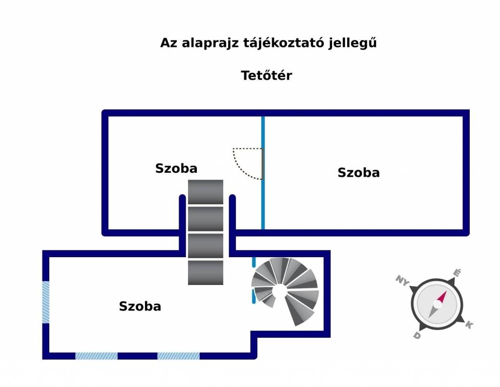 A tetőtérben három nagy szoba várja lakóit. A legnagyobb szoba alkalmas konyha és fürdőszoba kialakítására is.