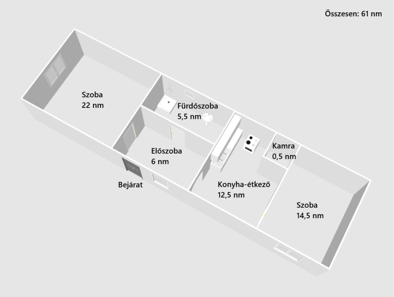 A házban két szoba található, amelyek világosak és tágasak, ideálisak a mindennapi élethez.