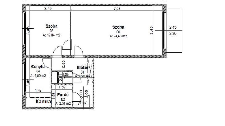 nappali, hálószoba, konyha + étkező, kádas fürdőszoba, mellékhelyiség, előszoba, közlekedő, erkély.