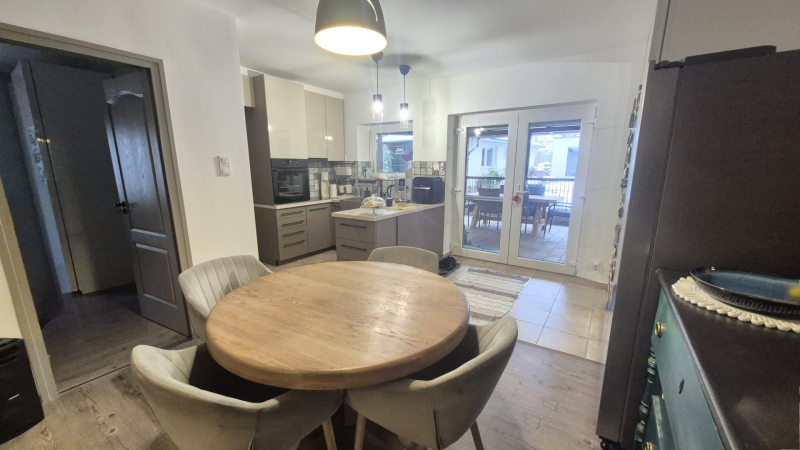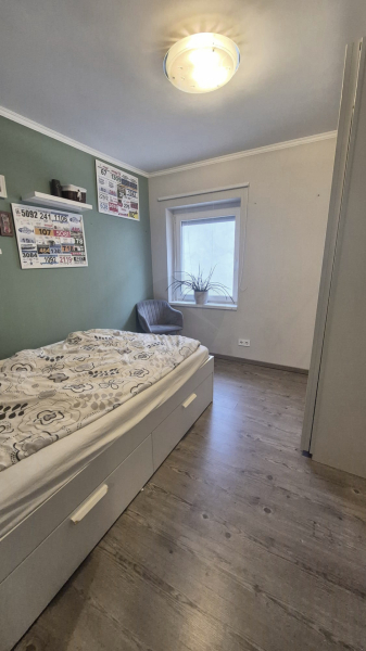 A ház elosztása praktikus: nappali + szoba + 2 félszoba, a szobák laminált padlóburkolattal rendelkeznek. A 3 rétegű, műanyag nyílászárók kiváló hő- és hangszigetelést nyújtanak.