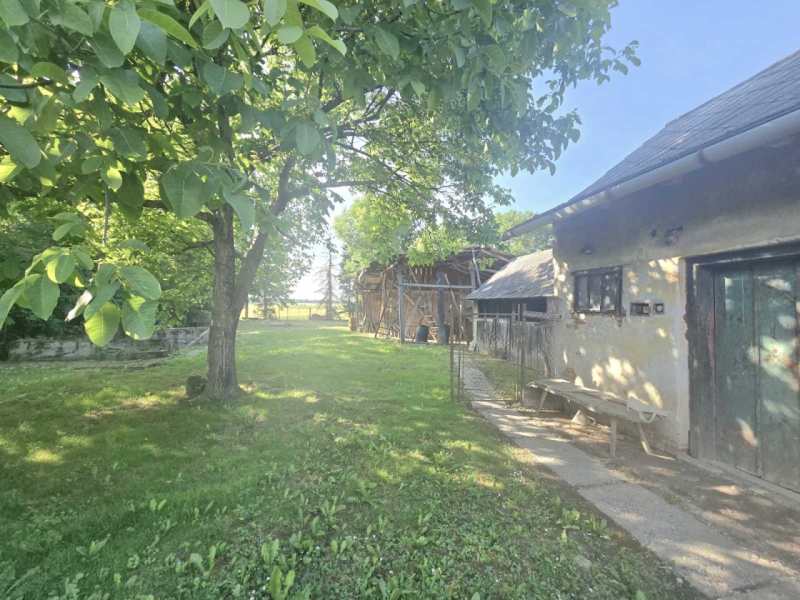 Az 1093 m2-es sík telek kertészkedésre, nyugodt pihenésre kiválóan alkalmas. A ház folytatása a nyári konyha, mely kis ráfordítással akár szobának is alkalmassá tehető, összenyitva a jelenlegi lakórésszel, vagy egy önálló lakrésszé is átalakítható.