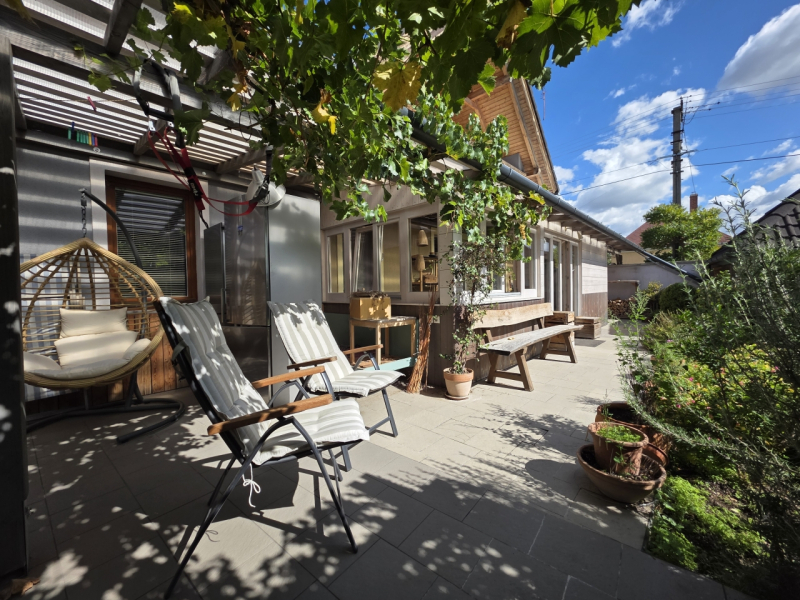 - Továbbá kialakításra került egy szép télikert is, amely nemcsak esztétikai értéket képvisel, hanem télen egyfajta plusz hőszigetelő rétegként is funkcionál, hozzájárulva a hőveszteség csökkentéséhez és az ingatlan kiváló energiahatékonyságához.