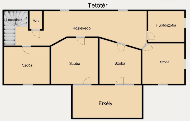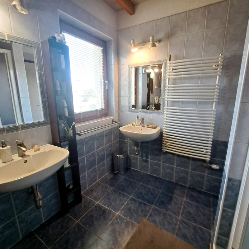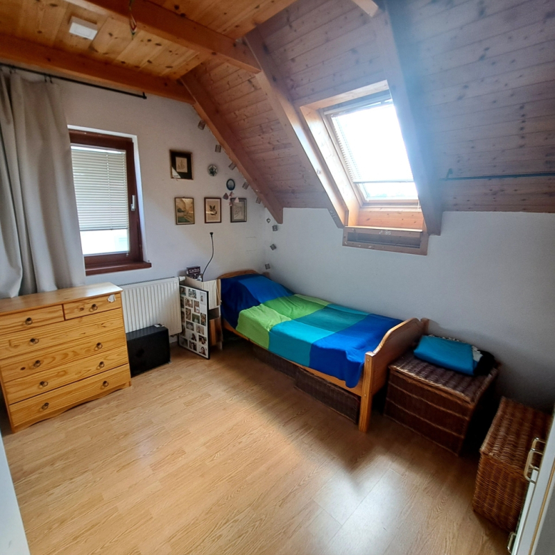 - Szobák száma: 7 szoba (az alsó szinten 2 + 1 fél, az emeleti részen 3+1 fél szoba található, emeletenként külön fürdő és wc).