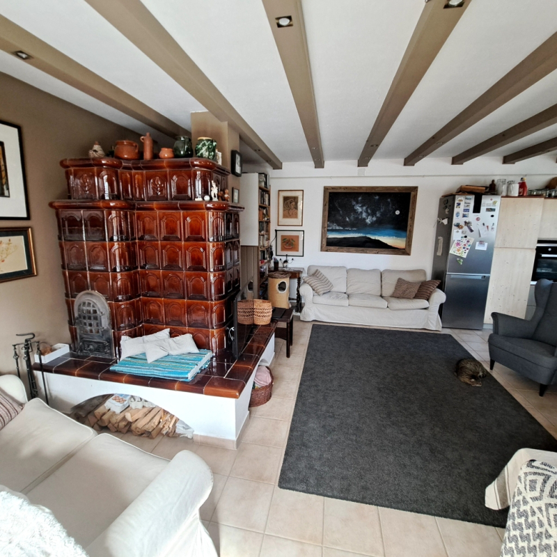 - Fűtés: kondenzációs gázkazán + padlófűtés + cserépkályha