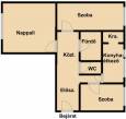 Az ingatlan elrendezése praktikus és tágas: nappali, két különnyíló hálószoba, fürdő, külön mosdó, konyha-étkező, kamra és előszoba található benne. A köztes fal elbontásával igény szerint egy még tágasabb konyha-étkező is kialakítható.