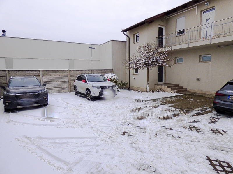 Az ingatlanhoz tartozik, a vételár részét képező belső, zárt udvaron lévő felszíni gépkocsi beálló, elektromos autó töltésére alkalmas kiállással.