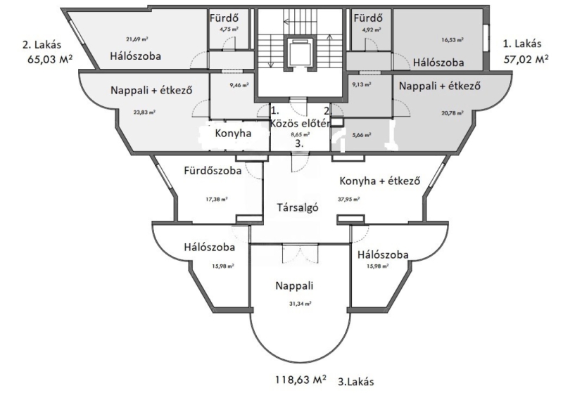 • Nagy alapterületű, több egységre bontható lakás – akár három különálló lakás is kialakítható