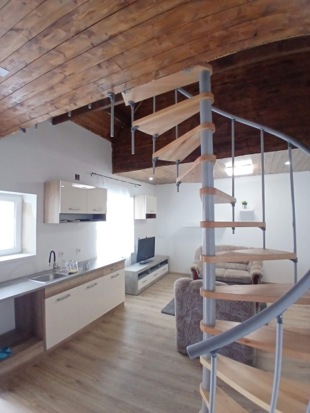• csigalépcsőn megközelíthető, fával burkolt, hangulatos GALÉRIA