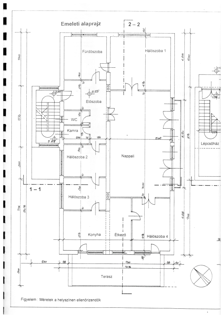 előszoba, közlekedő, nappali(66m2) konyha+étkező(24m2), 4 szoba(12m2, 12m2, 24m2, 16m2), fürdőszoba+Wc, Wc, gardrób(4m2), terasz(27m2).
