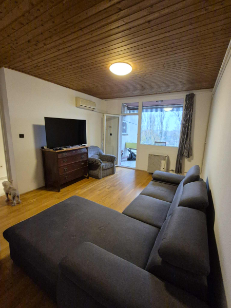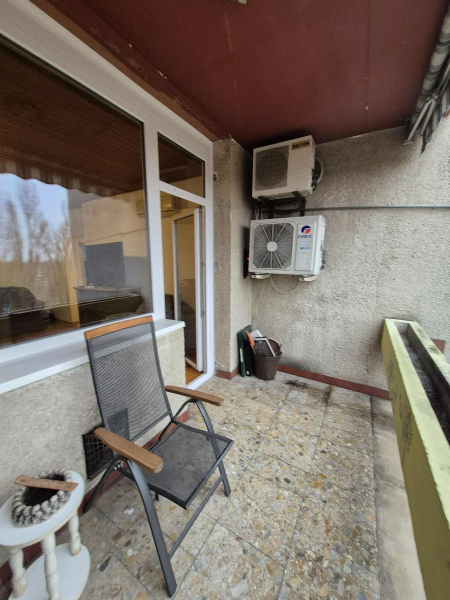 A lakásból egy parkra van kilátási lehetőség, világos. Nyáron legkondi biztositja a hűvöset.