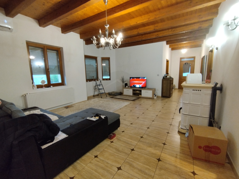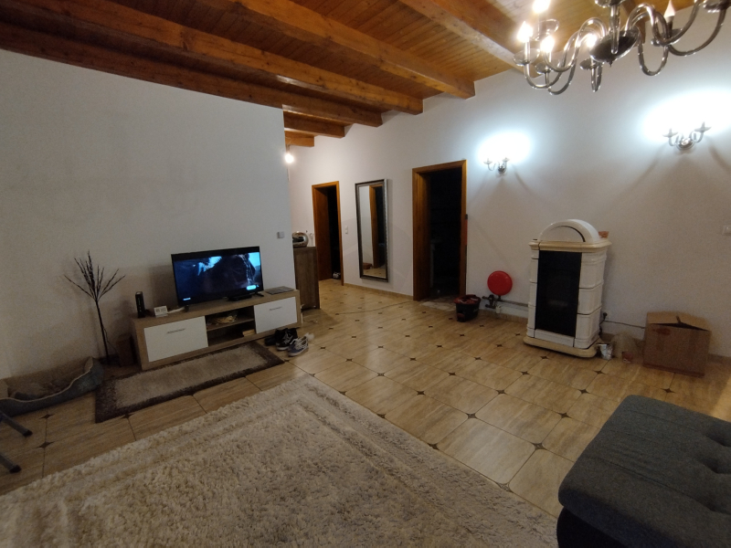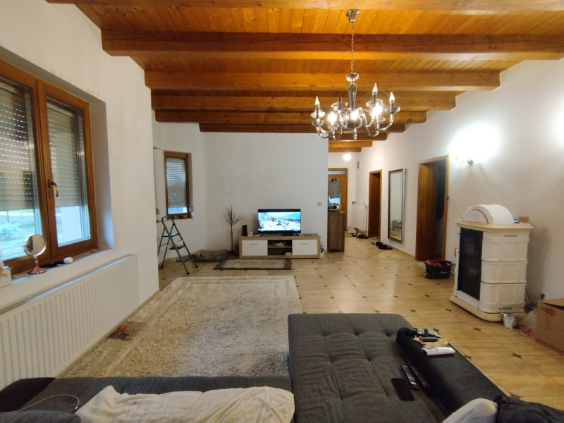 Az ingatlanban 2 db hálószoba található, illetve egy tágas nappali, amely kandallós, tökéletes helyszín lehet a közös családi estékhez. A fürdőszoba közel 12 m2, ezért helyet kapott egy sarokkád, egy zuhanyzó és minden egyéb háztartási gép is elfér kényelmesen. A hátsó terasz pedig a nyári estéken garantálja a kellemes, szabadtéri programokat, ahol barátokkal és családdal élvezheted a szép időt. A fűtés pellet kazánnal megoldott, így mindig meleg és otthonos lesz az ingatlan. A nappaliban egy 5 kw-os HŰTŐ-FŰTŐ KLÍMA is biztosítja a kellemes érzetet. A gázcsonk a telken belül található, igény szerint gázkazán is kialakítható. Az ablakok minőségi fából készültek 3 RÉTEGŰ üvegezéssel!
