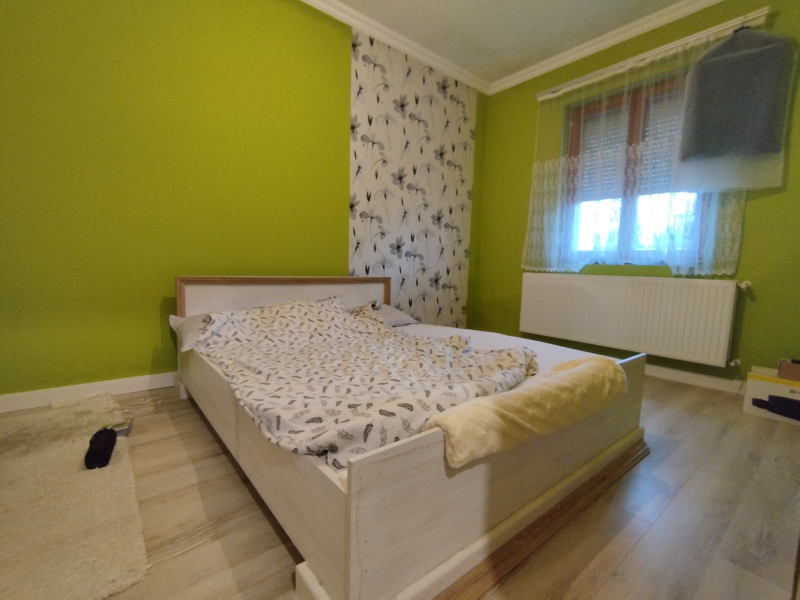 Az ingatlanban 2 db hálószoba található, illetve egy tágas nappali, amely kandallós, tökéletes helyszín lehet a közös családi estékhez. A fürdőszoba közel 12 m2, ezért helyet kapott egy sarokkád, egy zuhanyzó és minden egyéb háztartási gép is elfér kényelmesen. A hátsó terasz pedig a nyári estéken garantálja a kellemes, szabadtéri programokat, ahol barátokkal és családdal élvezheted a szép időt. A fűtés pellet kazánnal megoldott, így mindig meleg és otthonos lesz az ingatlan. A nappaliban egy 5 kw-os HŰTŐ-FŰTŐ KLÍMA is biztosítja a kellemes érzetet. A gázcsonk a telken belül található, igény szerint gázkazán is kialakítható. Az ablakok minőségi fából készültek 3 RÉTEGŰ üvegezéssel!