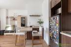 A nappali amerikai konyhával világos, kényelmes és tágas teret nyújt akár a home office-ban dolgozók számára is, a hálószoba pedig csendes pihenést biztosít az épület 7 cm szigetelésének köszönhetően.