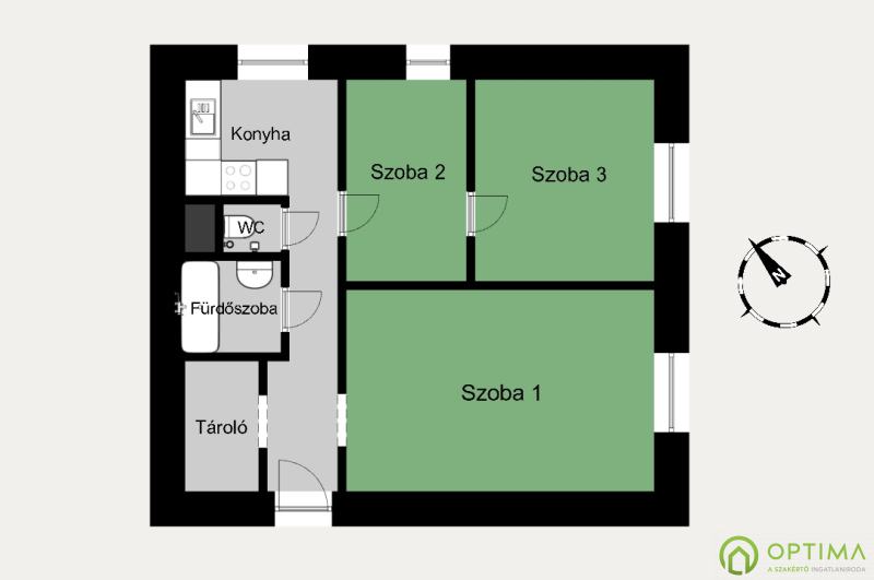 - az egyik szobát gipszkarton fallal két külön helyiségre osztották, így egy praktikus, háromszobás elrendezés jött létre,