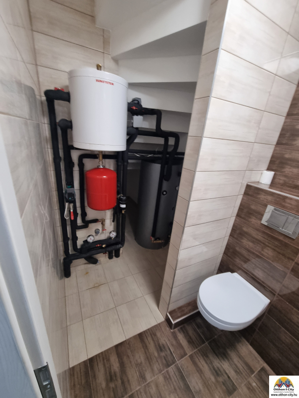 elektromos fűtés,padlófűtéssel,38 cm Ytong jól hőszigetelő főfalak vasbetonfödém,30 cm kőzetgyapot tető szigeteléssel,