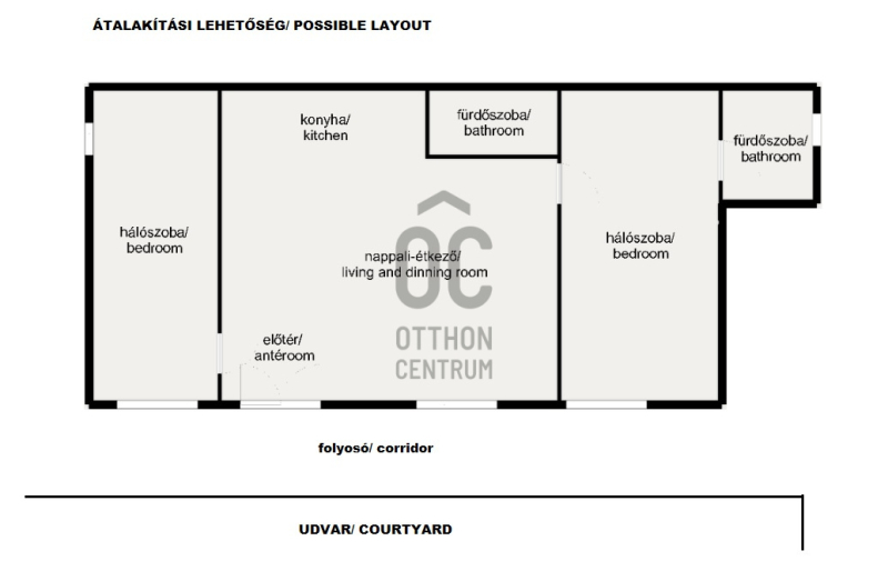 - udvari nézetű, mindössze egy lakás található utána a folyosón