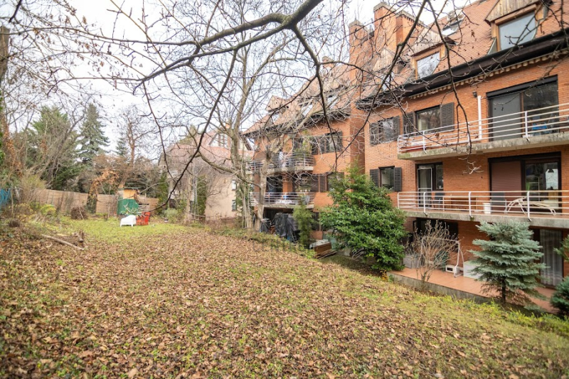 A lakás kivételes hangulatú: minden oldalról fák ölelik körbe, nyáron kevésbé melegszik át, télen pedig kifejezetten harmonikus hőérzetet biztosít.