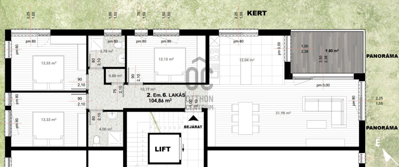 II. Kerület TÖRÖKVÉSZ körzetének MELLÉKUTCÁJÁBAN, ENYHE LEJTÉSŰ téglalap alakú, 1323 m2 TELKEN épülő, 8 LAKÁSOS LIFTES TÁRSASHÁZ 2. EMELETÉN kínálunk eladásra, egy DK-i TÁJOLÁSÚ, 180 FOKOS VÁROSI PANORÁMÁS (Budai vár, Bazilika, KÖZÉPEN A PARLAMENT….), 110 m2-es (9,8 m2 terasz 1/2 méretének a beszámítása mellett. A terasz nélküli főfalak által behatárolt alapterület 104,9 m2), 4 SZOBÁS, 2 FÜRDŐSZOBÁS, 2 DB TEREMGARÁZZSAL (+15 Mft/db), 3,5 m2 tárolóval (+6,3 Mft) rendelkező újépítésű lakást.