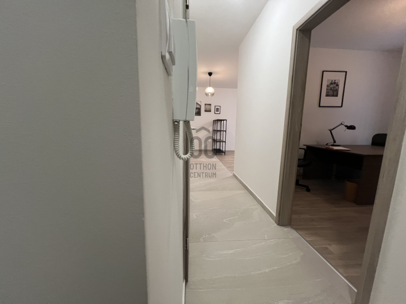A lakás ablakai és terasza egy csendes, belső kertre néznek. Az ingatlant soha nem lakták. ( A jelenlegi tulajdonos irodai tevékenységre vásárolta ) így a leendő vásárló első lakója lehet otthonának.