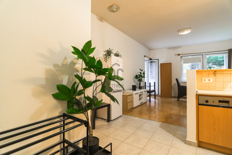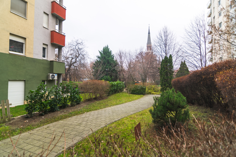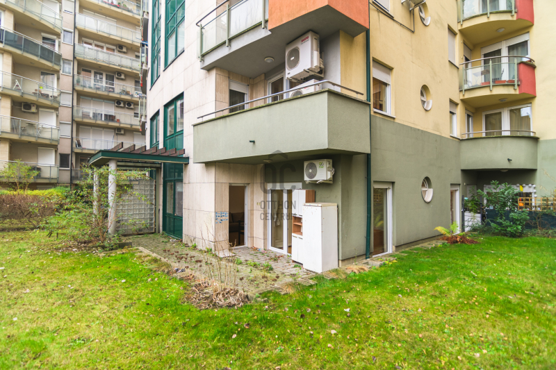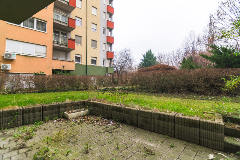 A lakás a belső, zöld udvarra néz, csendes. A lakáshoz tartozik a közösségben maradó, közös tulajdonú telekböl, a lakóingatlannal közvetlen