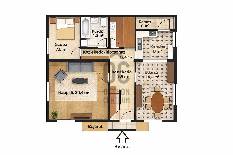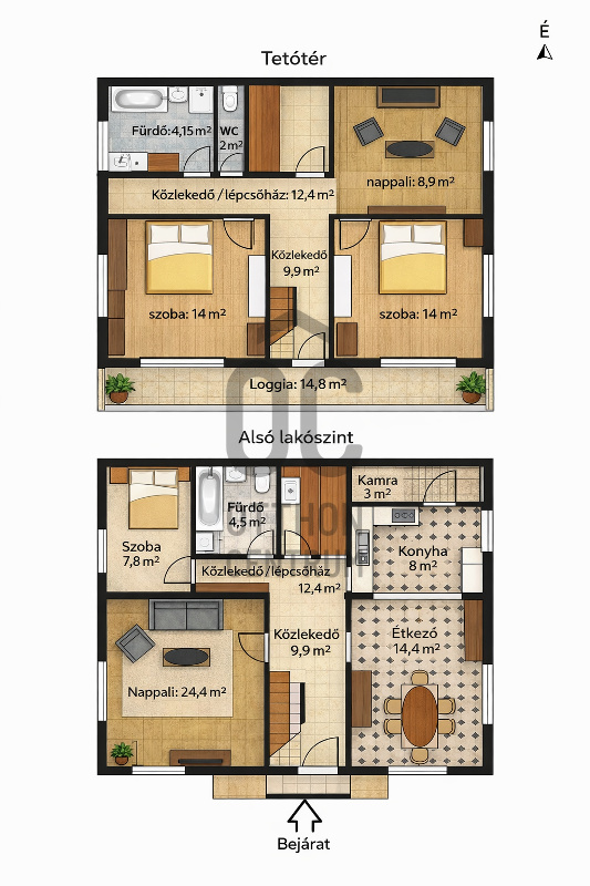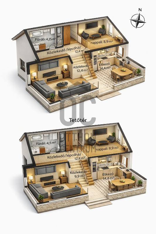 -dupla komfort (mindkét szinten fürdő és WC)