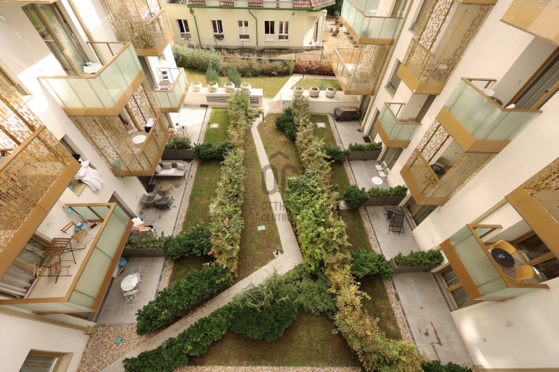 A 50 nm-es, két szobás, kiváló elrendezésű, különlegesen világos és napfényes otthonhoz 6 nm-es, kényelmes teraszos rész is tartozik. A lakás a ház csodálatos, kertész által gondozott, egyetlenülállóan szép belső parkjára néz – csendes, nyugodt, mégis a város pezsgésében.