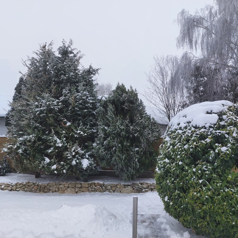 A kert intim, a 2 oldalt zárt fa kerítésnek köszönhetően, csodás növényekkel parkosított. A 7x3 m-es,1.2 mély kerti medence ideális a nyári hőségben való csobbanásra.