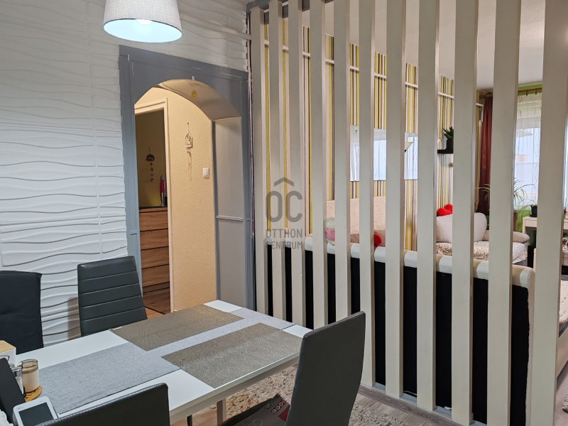 A lakás műanyag nyílászárókkal rendelkezik, redőnnyel és szúnyoghálóval felszerelve, így a komfort és az energiatakarékosság is biztosított.