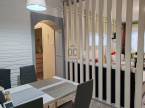 az étkező rész ízlésesen elválasztva fa panelekkel,