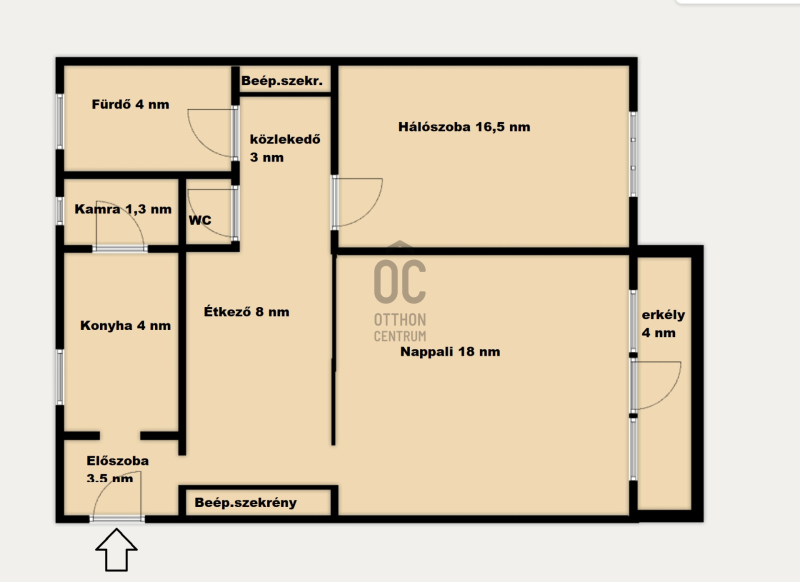 előszoba, felszerelt konyha, kamra,