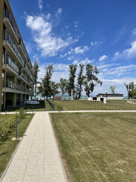 Első új építésű ütemünk, a Lakópark, második otthont kínál a Balaton szerelmeseinek, ahol akár egész évben élvezhetik a korszerű apartmanok kényelmét és a természet közelségét. A lakások közvetlen vízparti elhelyezkedése mellett az igényes tervezés, a minőségi kivitelezés az apartmanok remek kihasználhatóságát és értékállóságát biztosítják az Ön számára is. Az ötemeletes apartmanház a Balatonra merőlegesen helyezkedik el, így biztosítva a lakásokból az örök balatoni panorámát boldog tulajdonosainak. A társasház tetején korlátozott számú exkluzív panorámás grill és napozó tetőterasz kerül kialakításra, hogy a lehető legnagyobb privát szférát biztosítsák a tulajdonosainak és alkalmi vendégeiknek, ahol egyedi vízvétel és áramvétel biztosítása mellett minden lehetőség adott lesz egy kellemes, panorámás vízparti, naplementés rooftop party élvezetéhez.