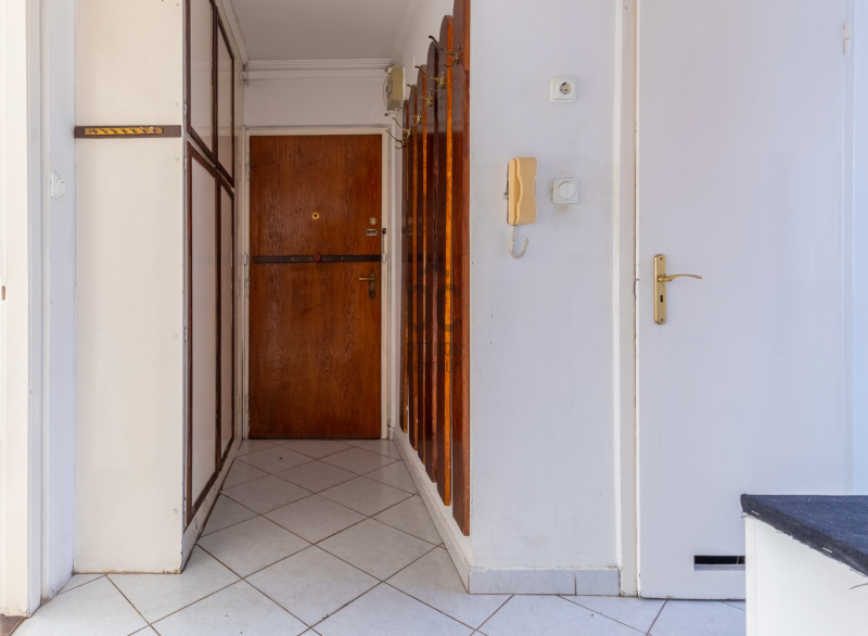 ➡️ A helykihasználást az előszobában beépített szekrények és az eredeti fürdőből kialakított tároló / gardrób segíti.