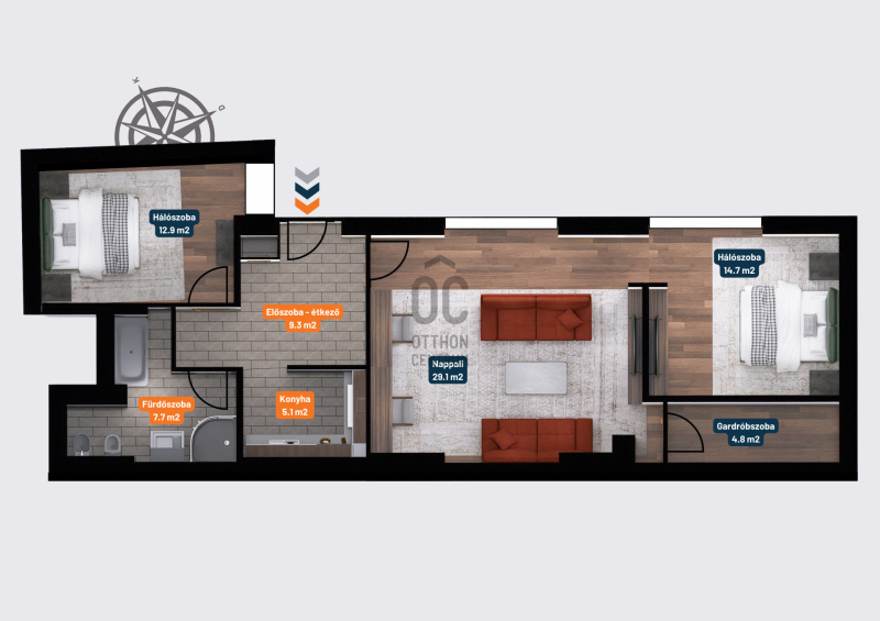 ✅ Tájolása keleti, napos és logikusan bútorozható terekkel rendelkezik.