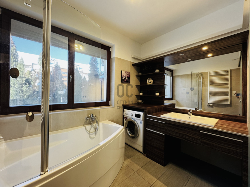Az ingatlan egyedi tervezésű, minőségi bútorokkal berendezett, azonnal költözhető.
