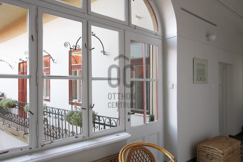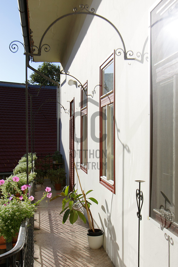 Az első emeleti elhelyezkedés kényelmes, a 9 m²-es függőfolyosó pedig ritka belvárosi extra: reggeli kávézáshoz, virágokhoz vagy egy nyugodt pillanathoz a város felett.