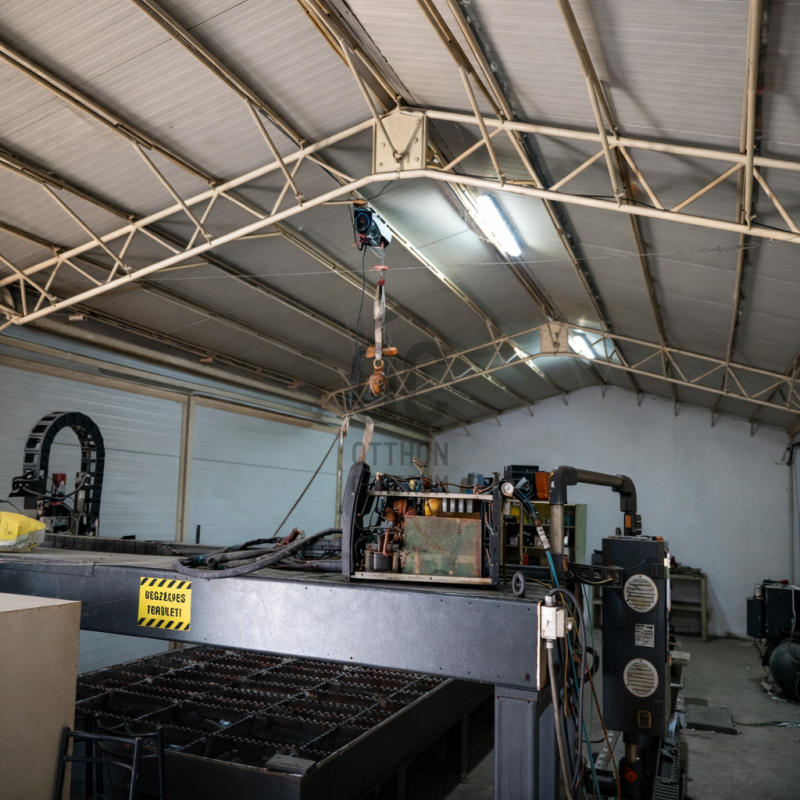 2024-ben épült, korszerű acélvázas csarnok, magas tetős kialakítással. Viacolor alapra helyezett szerkezet, műanyag nyílászárókkal és elektromos ipari kapuval. Szabadon álló, teljes egészében körbejárható épület, amely rugalmasan hasznosítható raktározási vagy könnyűipari célokra.