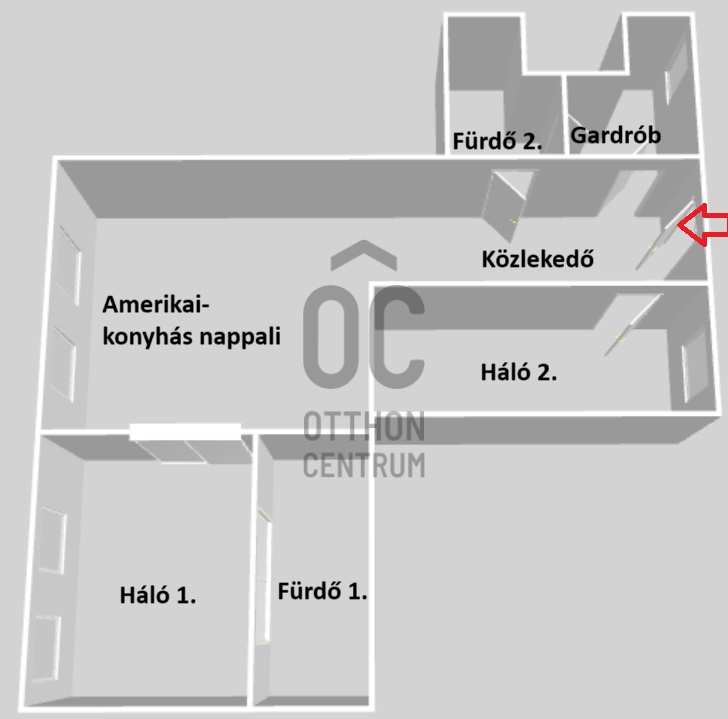 A tágas, világos lakás elrendezése ideális: 3 teljes értékű szoba és egy félszoba gondoskodik a kényelmes élettérről.