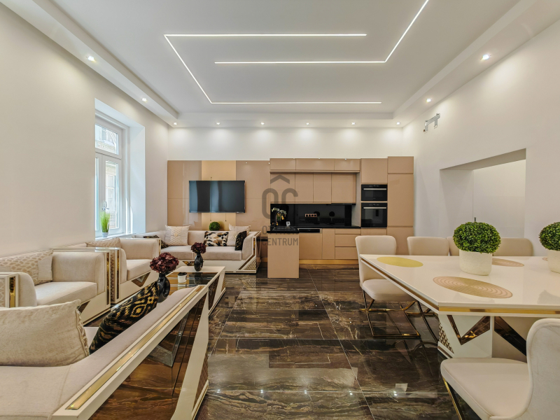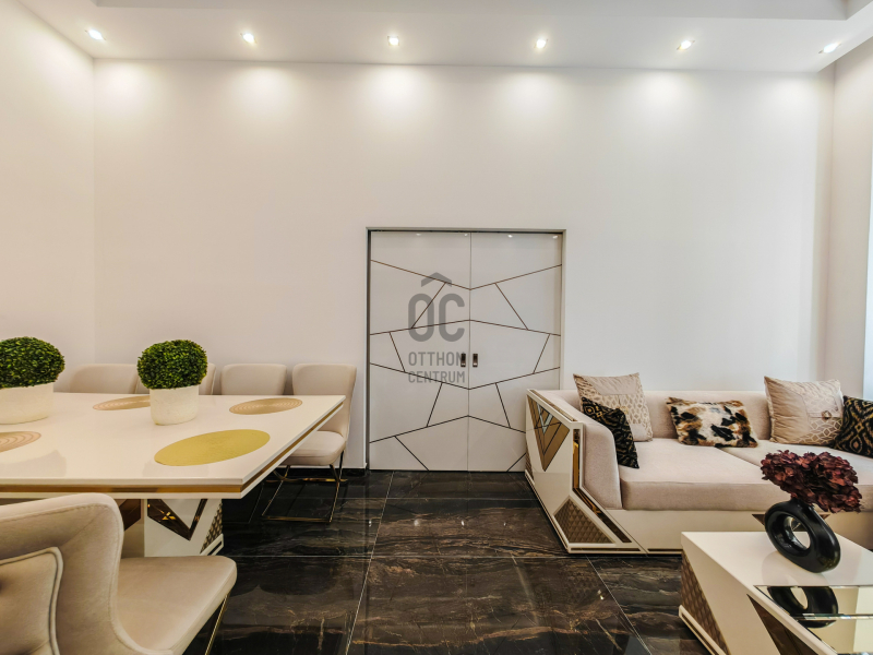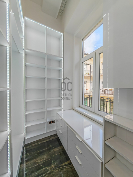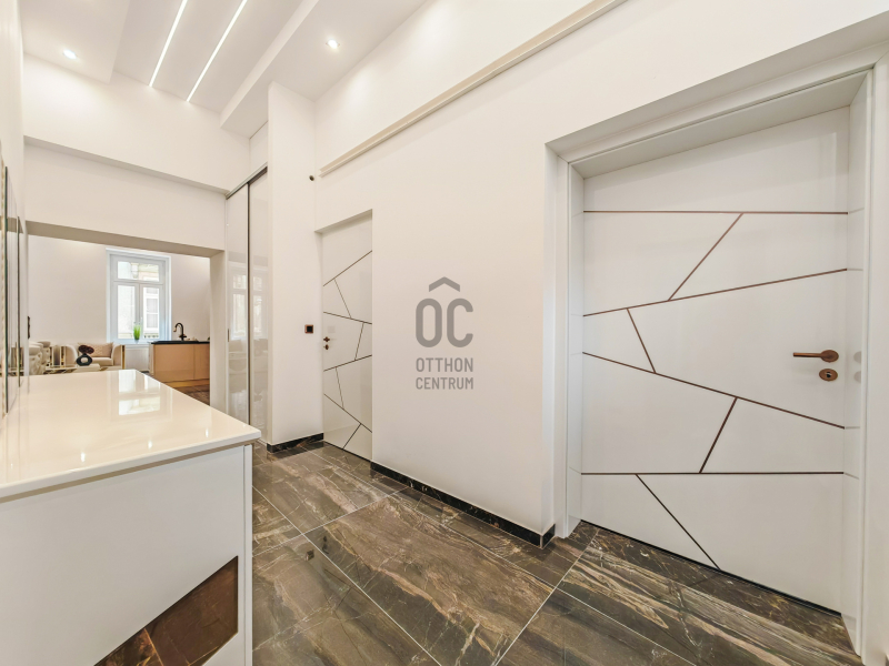 A lakás minden szeglete a luxust tükrözi: modern padlófűtés, új gázkazán, prémium burkolatok, és egyedi gyártású beltéri ajtók teszik különlegessé.