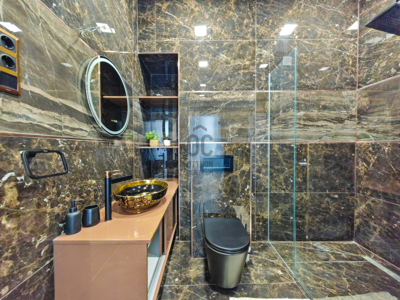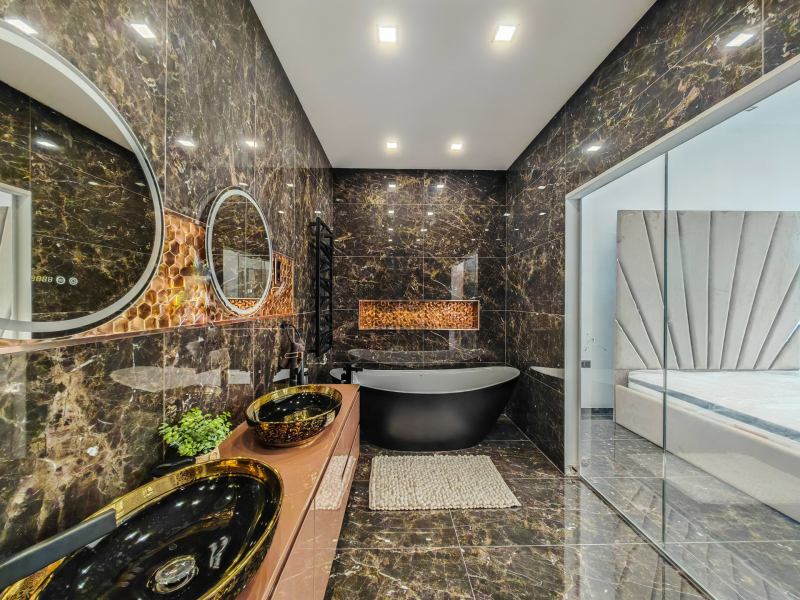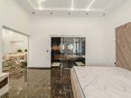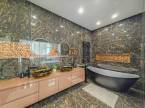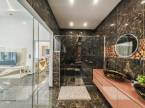 A 18 m²-es „master bedroom”-hoz egy különleges, üvegfallal elválasztott, exkluzív fürdőszoba kapcsolódik, amely önmagában is ritkaságnak számít.