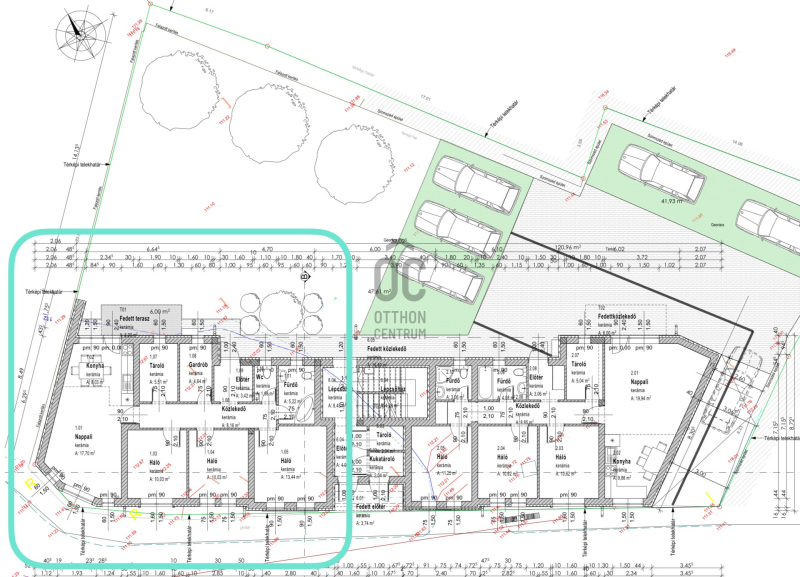 Mindegyik lakáshoz egy felszíni gépkocsi beálló tartozik telken belül.