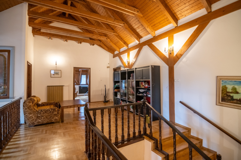 A ház 7 szobás, 5 WC-vel, 4 zuhanyzóval, 2 nappalival és felszerelt konyhával, így ideális nagycsaládosoknak vagy befektetőknek. A környék kiváló infrastruktúrával rendelkezik: iskola, orvos, bolt, játszótér, uszoda a közelben.