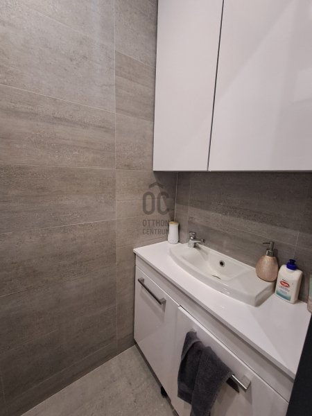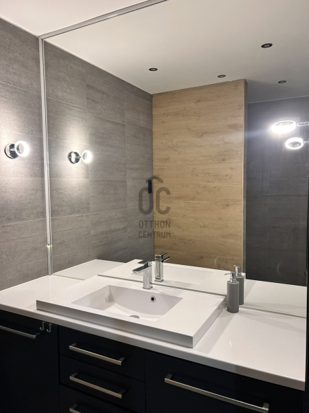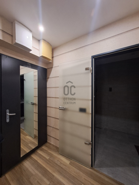 A konyhába egyedi tervezésű gépesített konyhabútor (főzőlap, sütő, mikró, mosogatógép, hűtő, elszívó) került beépítésre. Az egyik szobában egy hatalmas méretű, praktikus belső elrendezéssel bíró gardróbot alakítottak ki. A fürdőszobába nívós burkolatok és szaniterek kerültek. A prémium kivitelezés, a beépített bútorok és szekrények, valamint a LED hangulatvilágítás mind hozzájárulnak ahhoz, hogy otthona stílusos és kényelmes legyen.