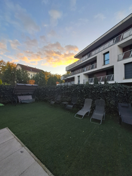 Eladó Debrecen legexkluzívabb lakóparkjában, a Bem-lakóparkban, a Nagyerdő csendes és zöld övezetében egy 2017. évben épült, liftes társasházban egy 62,66 nm-es, nappali plusz 2 szobás, földszintes, luxus penthouse lakás egy 13,02 nm-es terasszal és saját 68,57 nm-es műfüves kerttel.