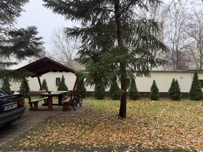 A ház rendezett udvarral rendelkezik, ahol filagória és szalonnasütő is szolgálja a lakók kényelmét és a közösségi élményeket.